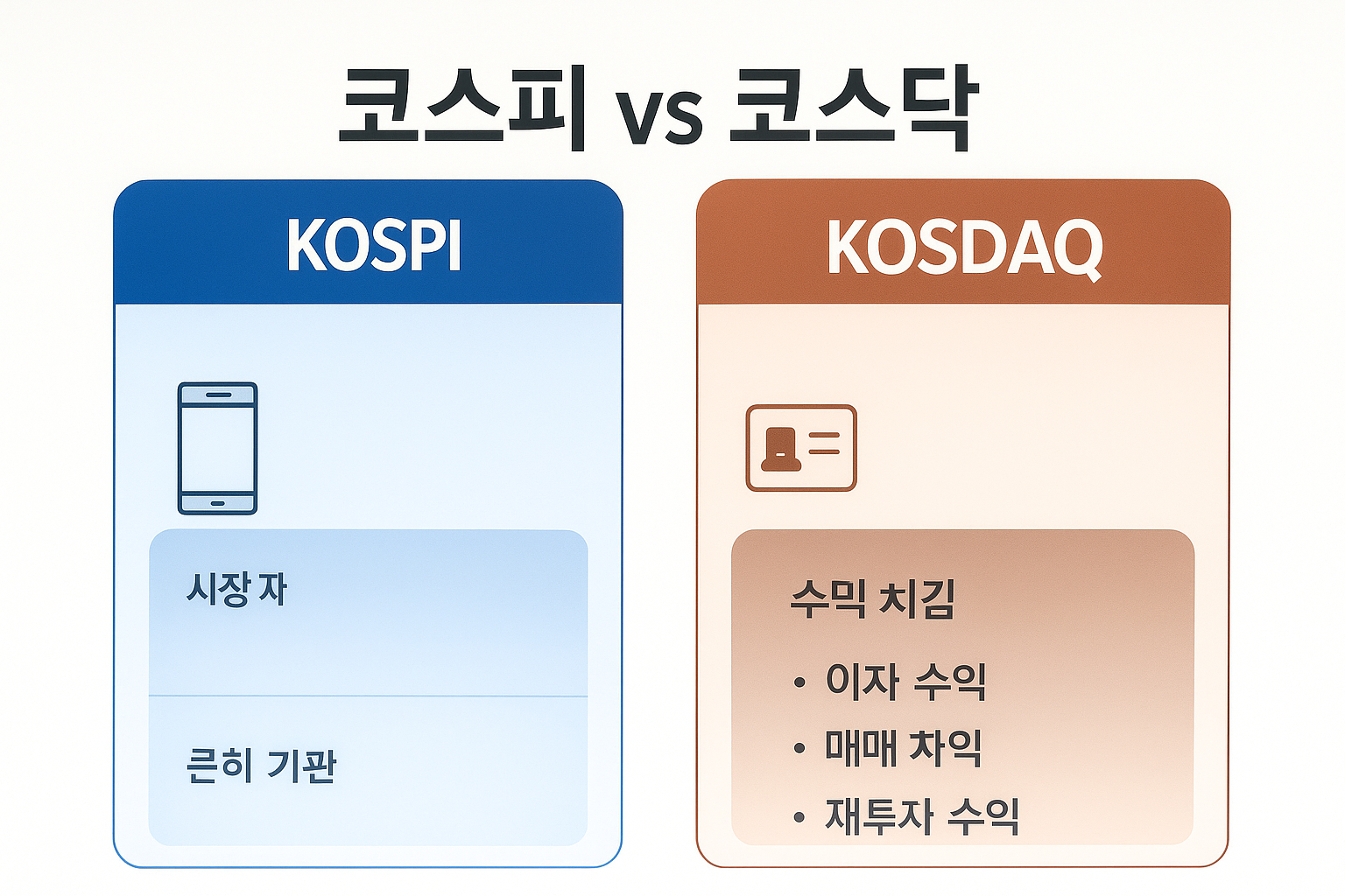 | 시장 성격 | 대기업 중심, 안정성 중시 | 중소·벤처 중심, 성장성 중시 |